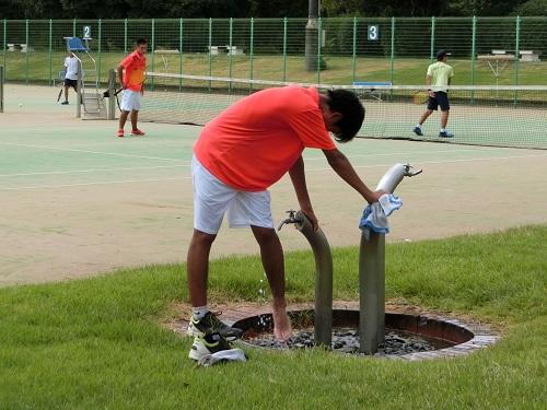 2日前の練習試合に比べて雲が出ていたので、コンディションは良かったのですが、それでもコート上は35℃を超す環境で、立っているだけで汗が吹き出します。試合中は水分補給をこまめにすることを心がけましたが、さすがに試合数が増えてくるとバテたようです。それでも先日の練習試合の時よりも、明らかにパフォーマンスは良く、夏休みに入っての日中の練習で体が暑さに慣れてきたようです。