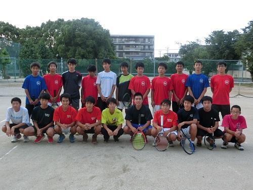 ▲テニス部男子(前列2年 後列1年)夏季大会の上位進出を狙っています!