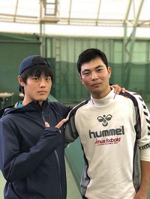 第二高校テニス部の1,2年生は、インカレ出場の掛林先輩、国体選手となった木村先輩と、テニス部OBの先輩から自信と元気を与えてもらっています。先輩たちを目標にこれからも「強いテニス」を追求して練習に励みます。