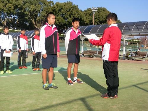 12月22日は終業式で、17日間の冬休みが始まります。冬休み期間中は近くの熊本県立大学のテニスコートを借りての練習です。1月6,7日に冬季ダブルスとスリクソンカップ(1年生団体戦)があるので、冬休みは実践練習が中心となります。もちろん基本は大事です。