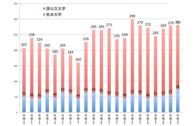 国公立大学・熊本大学への現役合格者数の推移