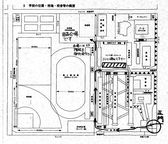 正門から入っていただき、ハンドボールコート横にお停めください。